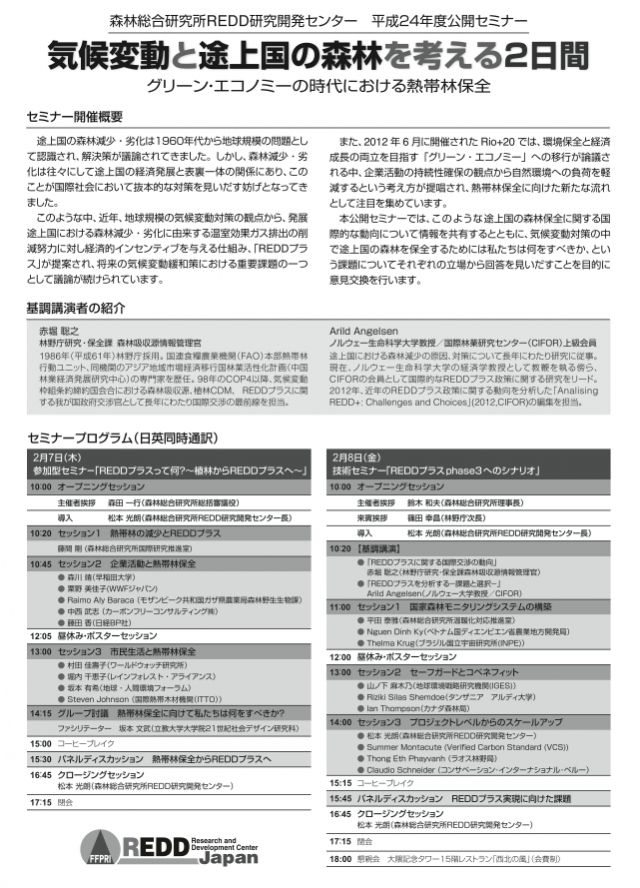 2/7 参加型セミナー REDDって何?植林からREDDプラスへ