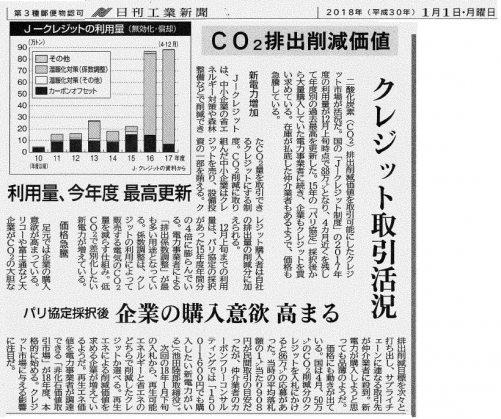 J-クレジットの活用について(日刊工業新聞2018/1/1)