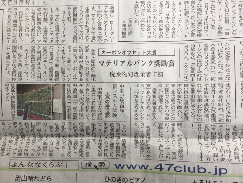 岡山県の地元紙である山陽新聞に掲載されました。