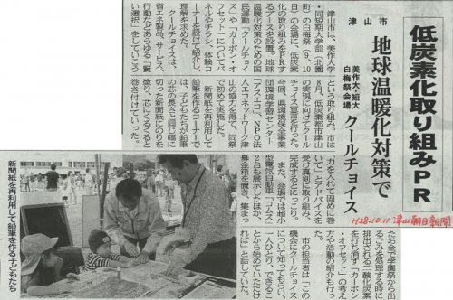 津山市と地元大学・短大がCOOL CHOICEで連携(津山朝日新聞2016/10/11)