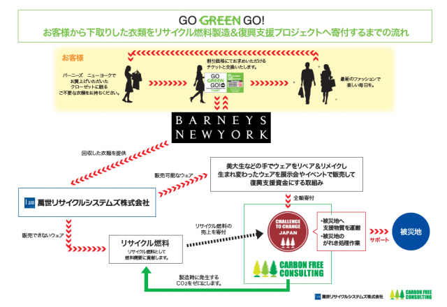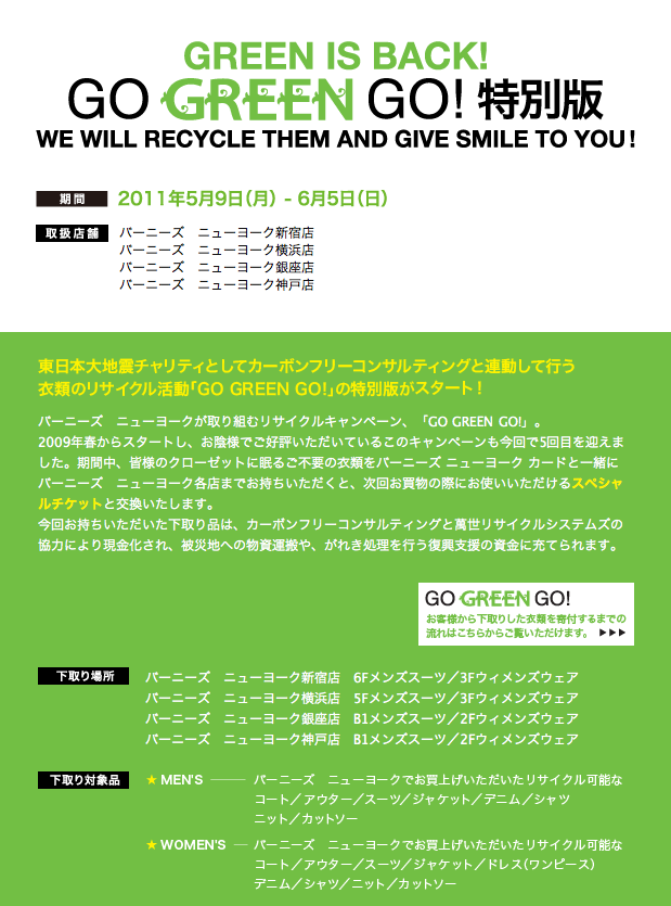 東日本大震災チャリティとしてカーボンフリーコンサルティングと連動して行う衣類のリサイクル活動「GO GREEN GO!」の特別版がスタート!