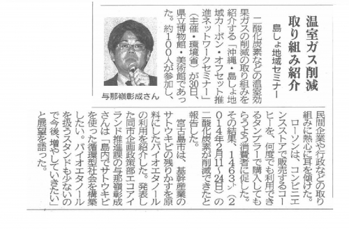 沖縄・島しょ地域カーボン・オフセット推進ネットワーク開催(沖縄タイムス 2015/1/31)