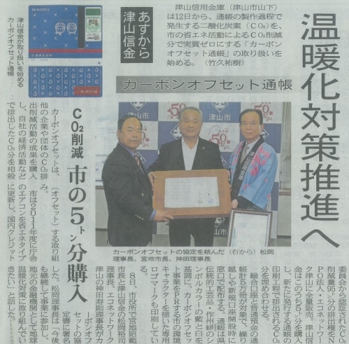 カーボン・オフセット通帳について、山陽新聞に掲載されました。
