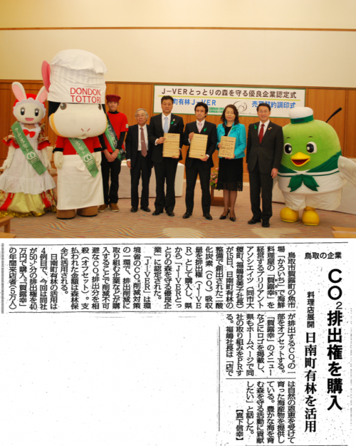 地産地消オフセットで優良企業認定(毎日新聞2014/4/16,日本海新聞2014/4/19)