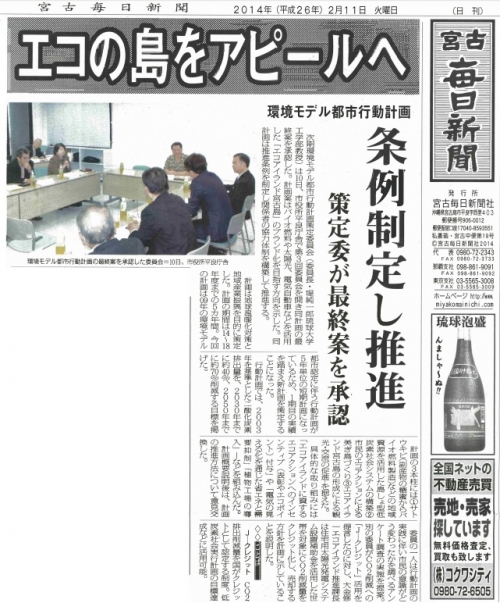 エコの島アピールへ(宮古毎日新聞2014/02/11)