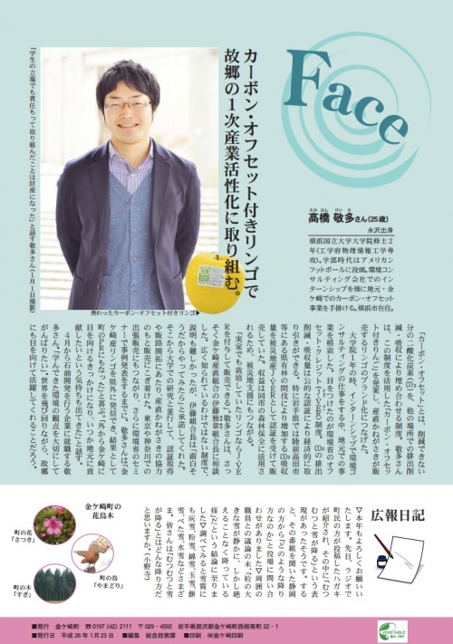 金ケ崎産直組合との取り組みが金ヶ崎町の広報誌に掲載されました。