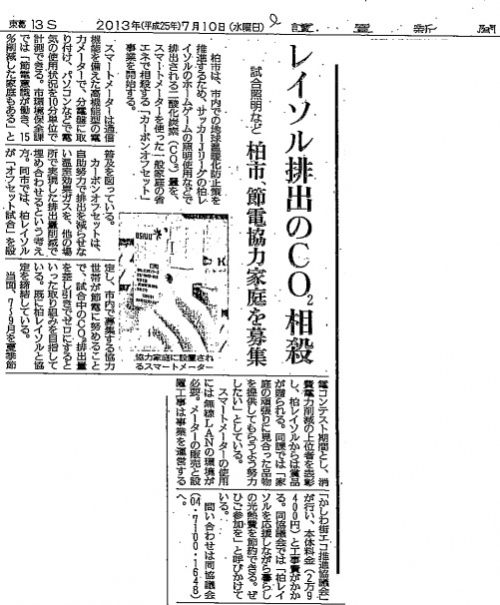 柏市のスマートメーターによる見える化事業(読売新聞7/10)