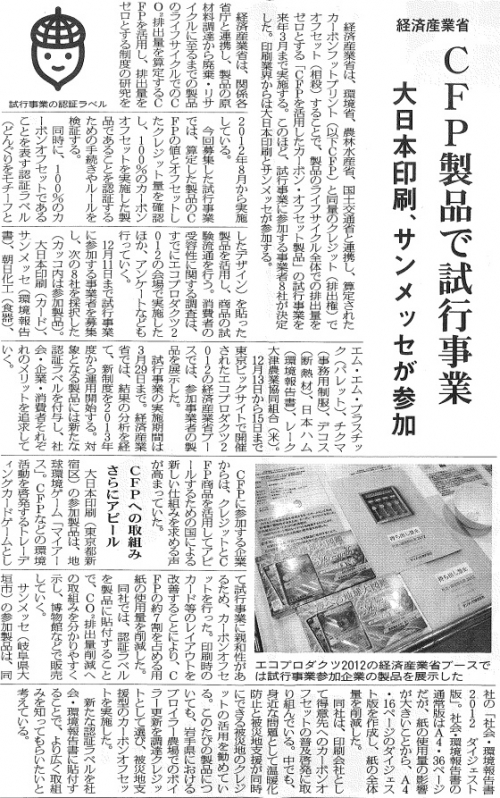 3省連携:CFPのカーボン・オフセット事業(印刷新報121220)