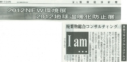 この度、カーボンフリーコンサルティング及び、萬世リサイクルシステムズとカーボンフリーコンサルティングが共同で立ち上げたブルーエコノミー研究所が2012NEW環境展に出展します。同時に2012地球温暖化防止展も開催されます。