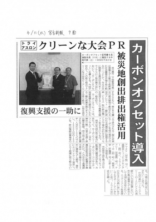 宮古島トライアスロンのカーボンオフセット実施(宮古毎日新聞他)