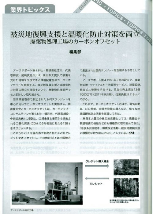 季刊産廃NEXT2012新春号にて特集されましたのでご報告いたします。