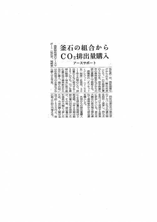 アースサポート様 被災地支援型カーボンオフセット(12/07 日経新聞)
