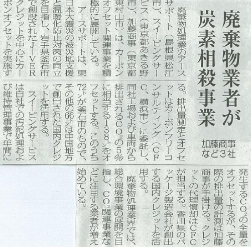 廃棄物処理業におけるカーボンオフセット(12/21 環境新聞)