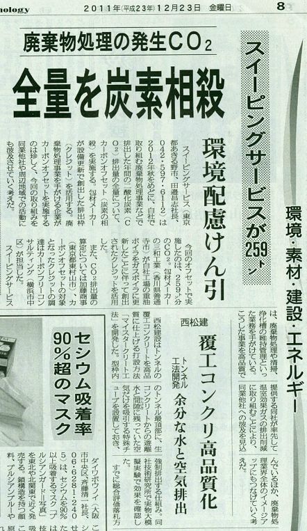 スイーピングサービス様(12/23 日刊工業新聞)
