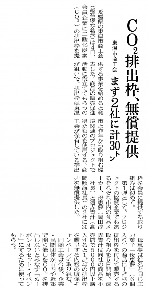 この度、愛媛県東温市ならびに東温市商工会が行う、「とうおん太陽の恵みスマイルプロジェクト」に関する記事が日経新聞四国版に掲載されましたので、ご紹介いたします。