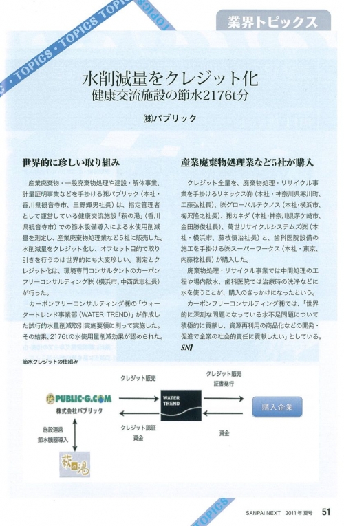 カーボンフリーコンサルティングの新事業部ウォータートレンドが実施した、試行的水量削減取引の取組が、産廃ネクスト誌に掲載されましたので、ご報告いたします。
