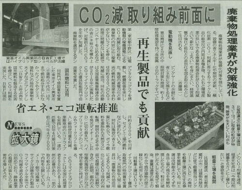 【新聞掲載】産業廃棄物業界の温暖化対策取り組みのご紹介(2011年2月7日 日刊工業新聞)