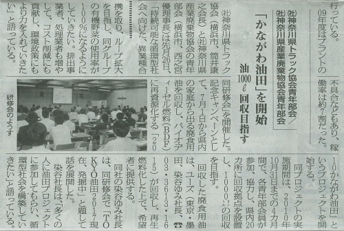 神奈川県トラック協会と神奈川県産業廃棄物協会の青年部会は先月26日に異業種交流会を行い、記念キャンペーンとして「2010かながわ油田」を開始します。