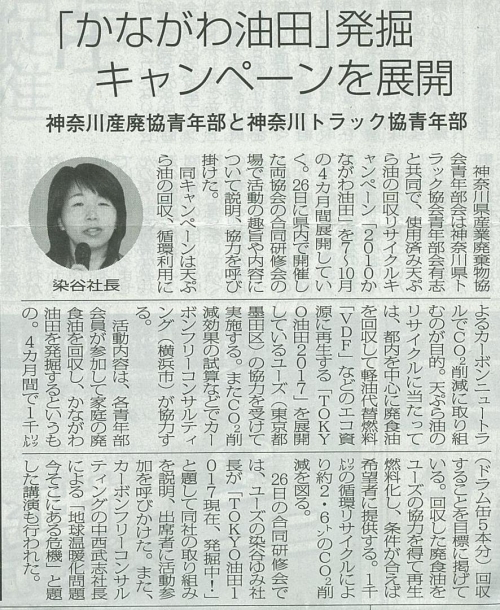 【新聞掲載】かながわ油田発掘 キャンペーンを展開(2010年6月30日付 環境新聞)