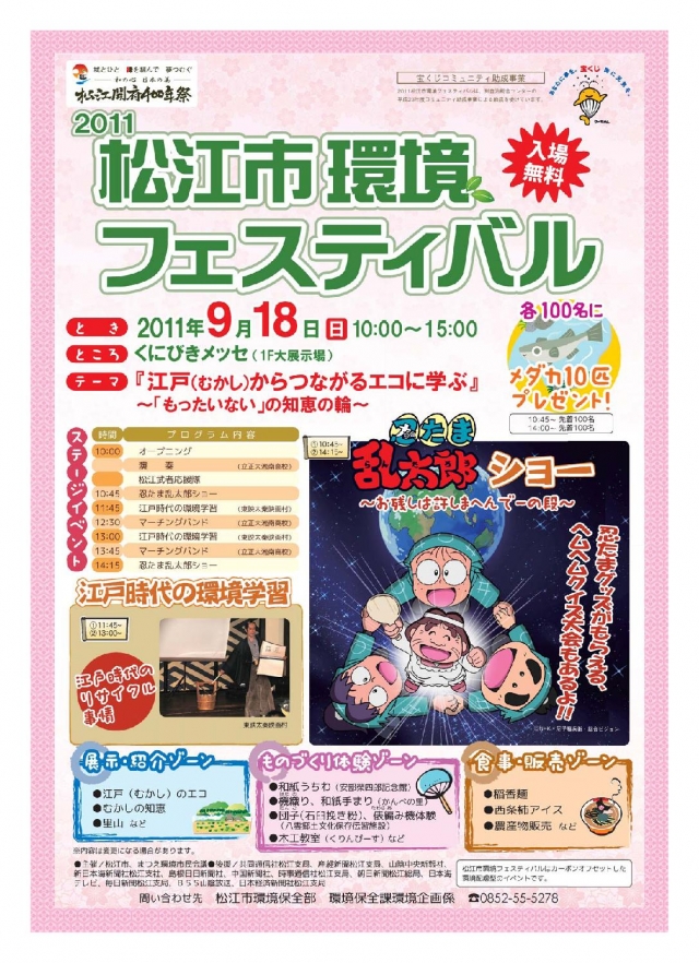 2011年度の「松江市環境フェスティバル」にて排出された二酸化炭素を、岩手県のブロイラー農場にて創出された排出権を利用して、被災地支援型のカーボンオフセットを実施いたしました。