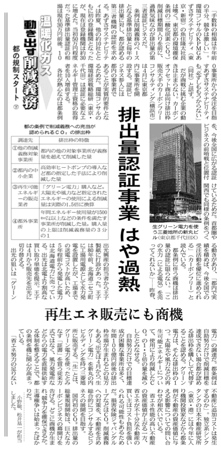 日経産業新聞にカーボンフリーコンサルティング社について掲載されました。