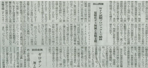 産廃中間処理業の加山興業様は、人道支援と絡めたWFP FOR CARBONFREE PILOT PROJECTを支援する事を決定し、その内容が掲載されましたので、ご報告いたします。
