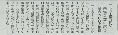 サッカーJリーグ2部(J2)の横浜FCは、2010年シーズンのホームゲーム全18試合でカーボンオフセットを実施します。