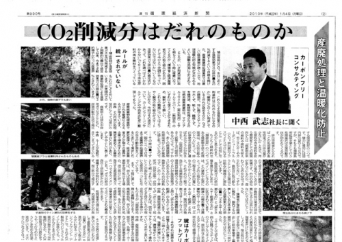 カーボンフットプリント、国内クレジットやカーボンオフセット等についてのコメントが掲載されています。(2010年1月4日号)