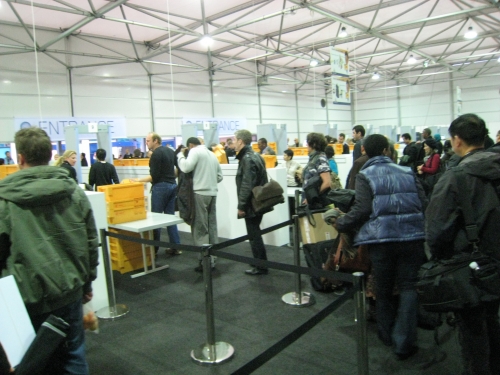 会場に入ろうとすると、まず長い行列に並ばなければなりません。初日には凍てつく寒さの中2時間以上も外で待っていた人もいたようです。