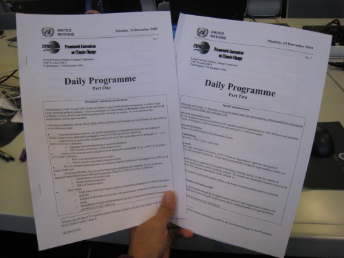 さて、毎朝会場に入るとまず向かうのがドキュメンテーションセンターです。ここには、主催側が発行するDaily Programという毎日の会議スケジュールが書かれたものや、参加団体が発行する日報のようなものが集積しています。これらの書類をまず手に入れてから、その日の行動計画を立てます。