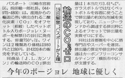 【新聞掲載】株式会社パスポート様の取り組みが掲載されました ボジョレーヌーボ