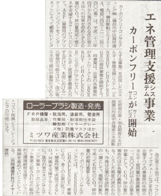 5月15日付けのプラスチック産業資材新聞にて弊社のエネルギー管理支援システム事業(ENERGY CHALLENGE)についての記事が掲載されました。