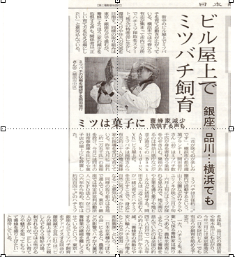 ミツバチは横浜市の都市環境プランナー岡田信行さん(40)ら有志20人が地元養蜂家の指導を受けて育てている。昨年9月に2群れ(約1万5千匹)の巣箱を設け、今月には同市の旧蚕倉庫本社ビルや菓子店の屋上にも設置した。