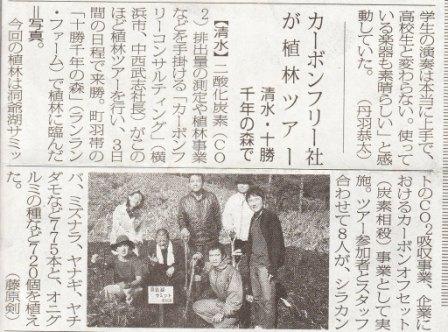 十勝毎日新聞(11月7日)に弊社の十勝千年の森での植林ツアーが取り上げられました。