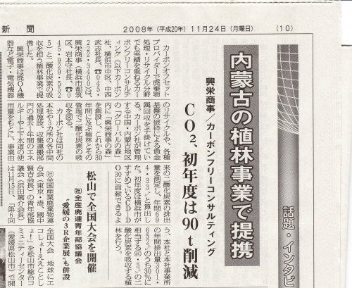 廃OA等都市鉱山リサイクル業、各種基板破砕による貴金属回収業等を行う興栄商事株式会社は、内蒙古地区での森づくり事業を開始いたします。