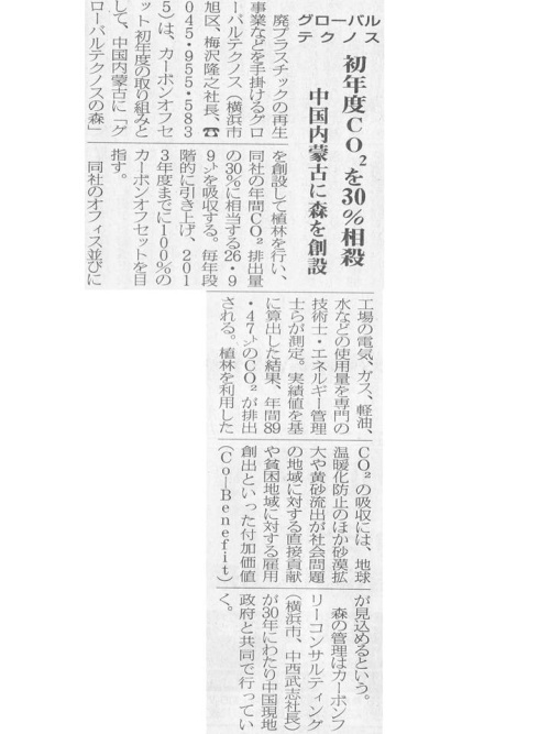 9月1日付けの週刊循環経済新聞に、株式会社グローバルテクノスのカーボンオフセット実施に関する記事が掲載されました。