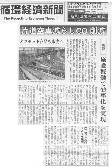 循環経済新聞1面に掲載されました